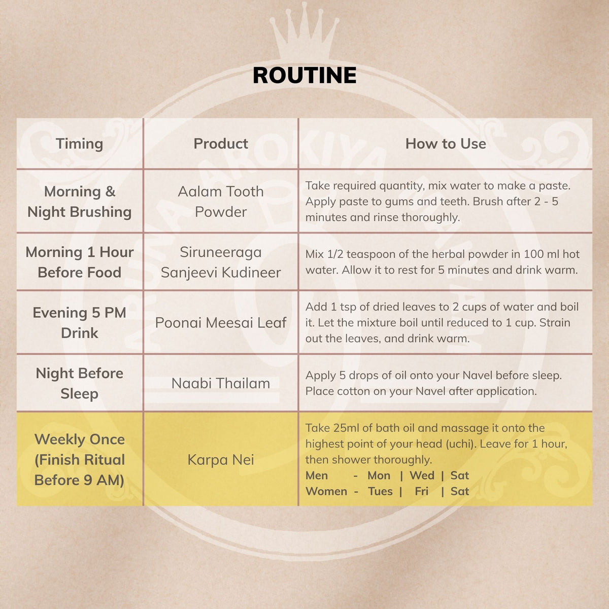 This bundle cleanses, strengthens, and supports long-term kidney function. With leaf decoctions, supportive thailams, and Naabi-based detox, it’s a complete kidney companion.