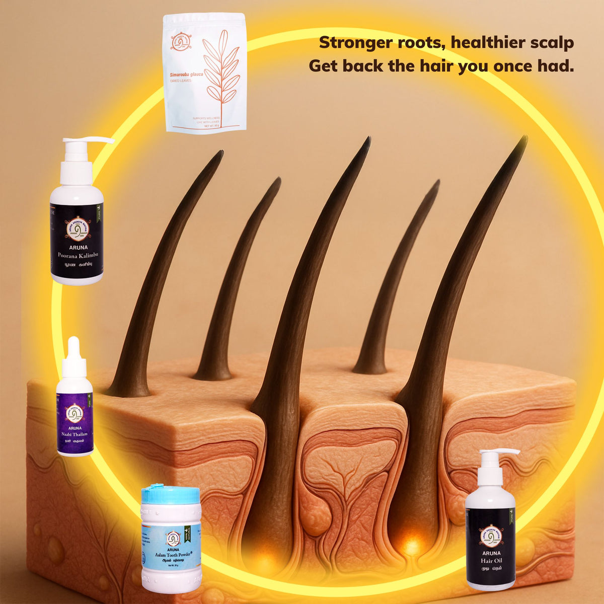 Tackle hair fall from the root with herbs that strengthen follicles, nourish the scalp, and banish dandruff. This bundle brings your hair back to life - shiny, strong, and thriving.