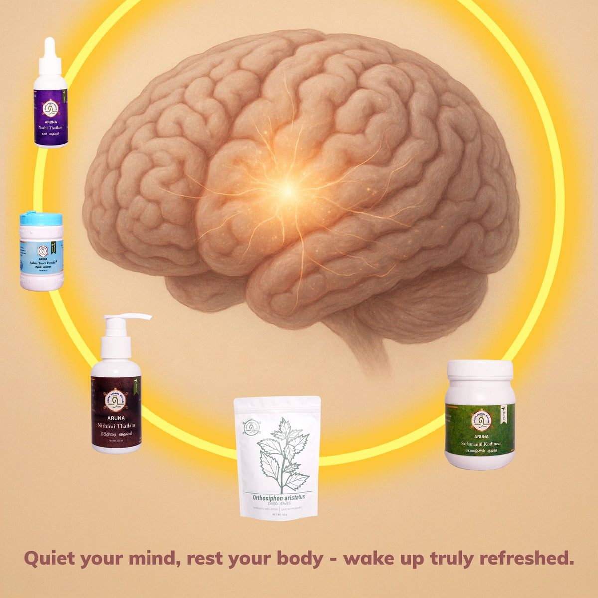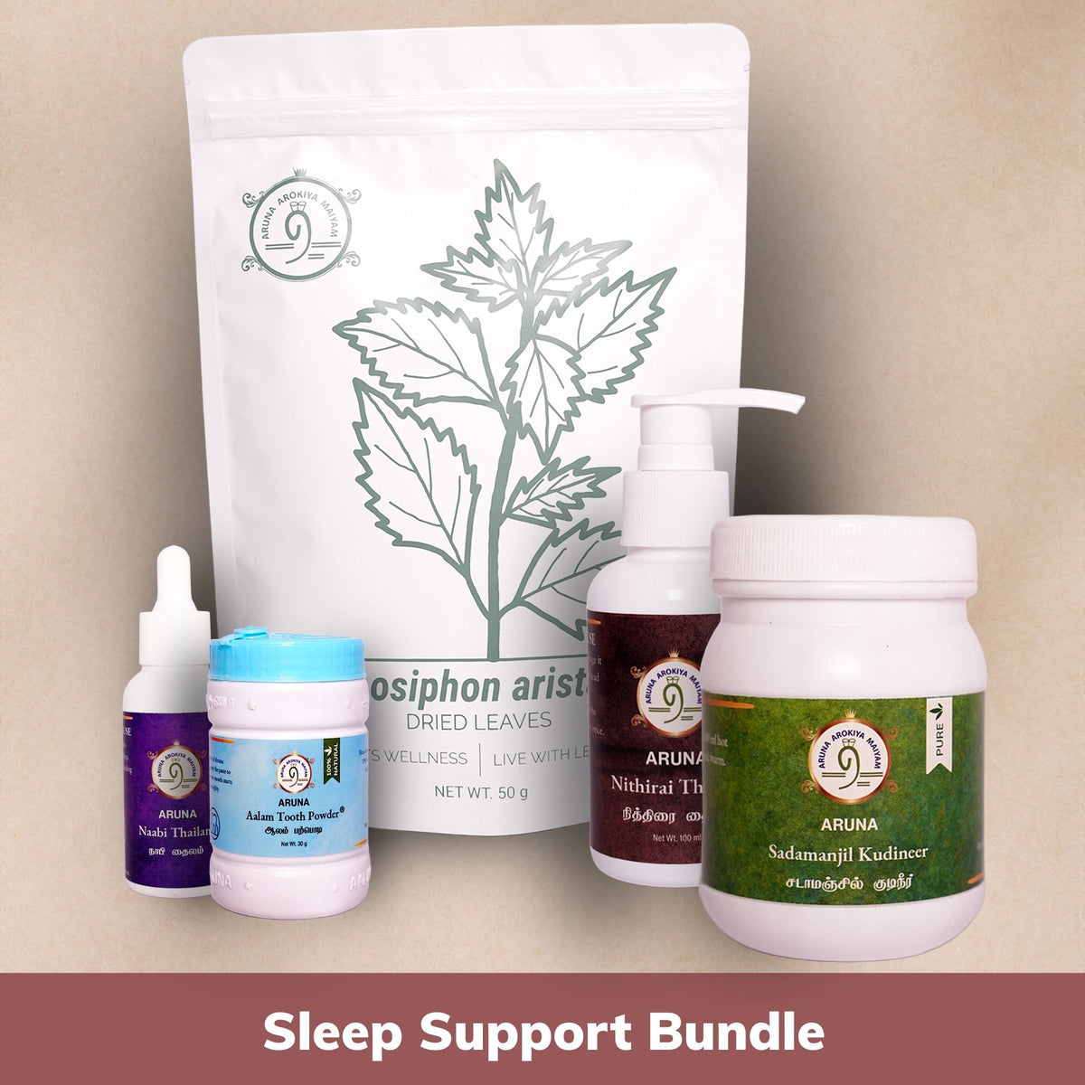 A calming set of oils, decoctions, and supportive leaves that work together to ease nervous tension, cool the system, and invite deep, uninterrupted sleep. Let the body remember what true rest feels like.