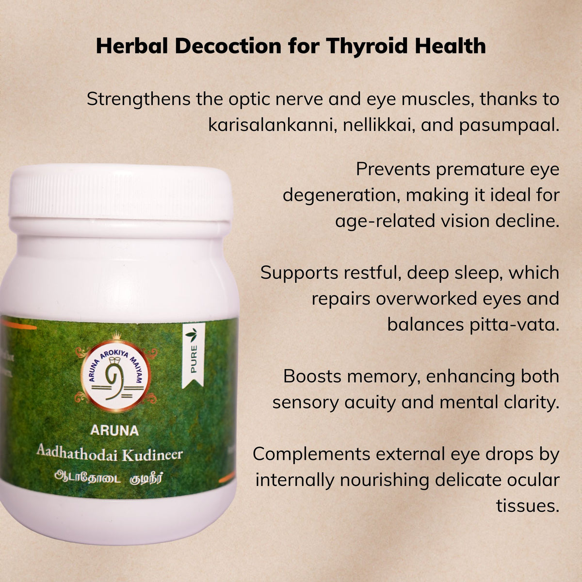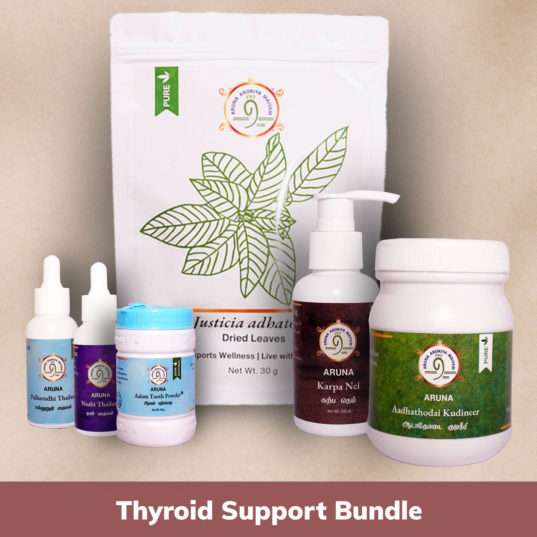Yes. This bundle supports balance, not stimulation or suppression. Ingredients like Ashokapattai Kudineer and Karpa Nei help normalize hormonal rhythms and reduce inflammation whether you're dealing with underactive or overactive thyroid tendencies.
