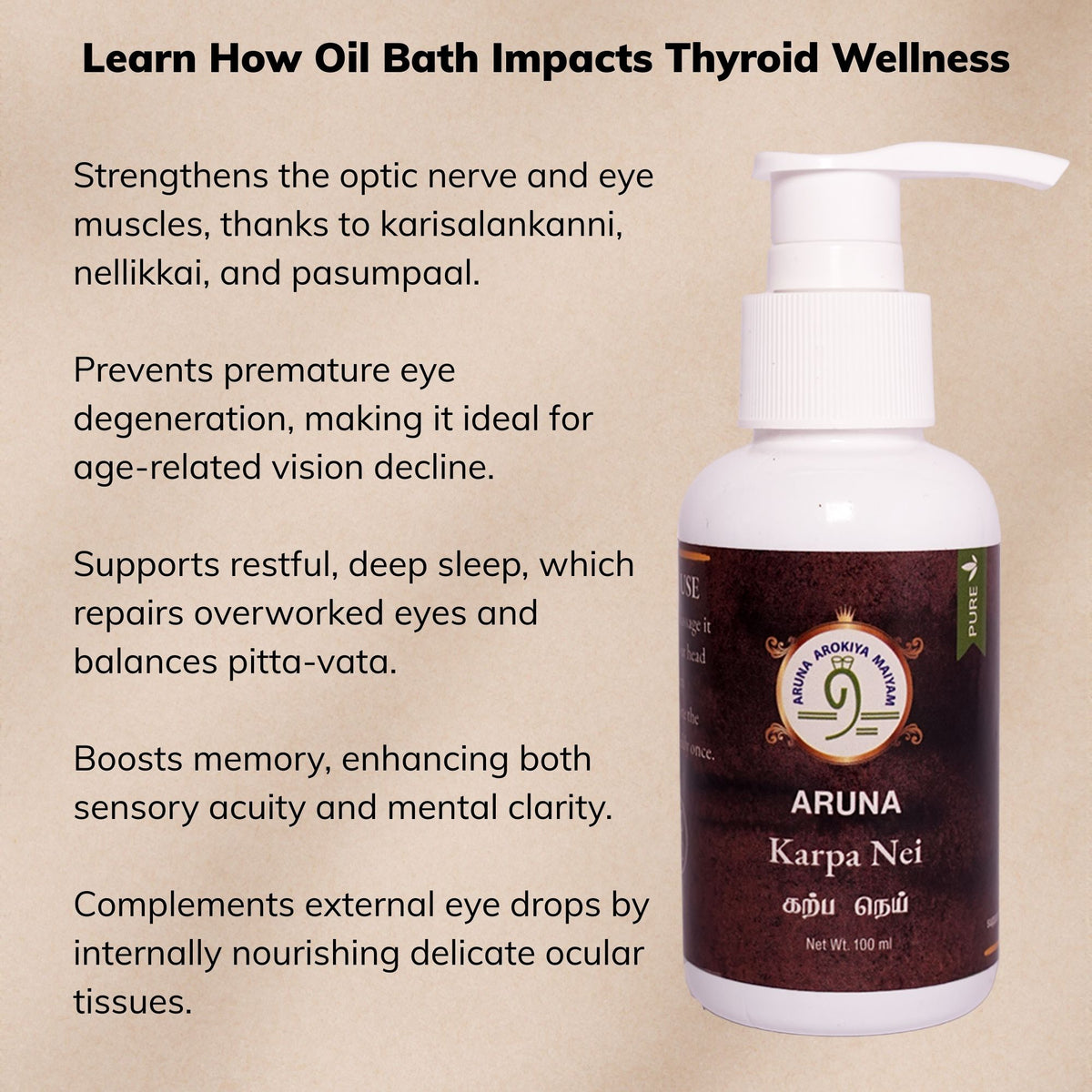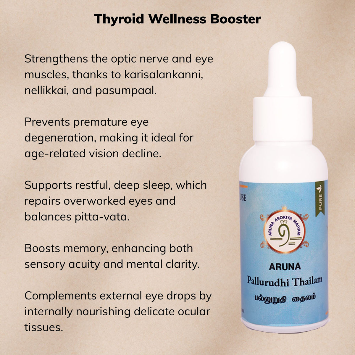 Palluruthi Thailam soothes swelling, supports lymph flow, and relieves tightness or pain that can occur in thyroid-related inflammation.